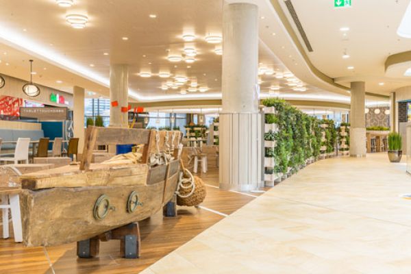 Aber darauf beschränkt sich die Zusammenarbeit nicht. Die Begrünungsspezialisten zeichnen auch für die allgemeine Begrünung einiger Center verantwortlich. So ist 2015 beispielsweise die Holsten Galerie in Neumünster von DAUERFLORA ausgestattet worden und 2016 das Phönix Center in Hamburg-Harburg.