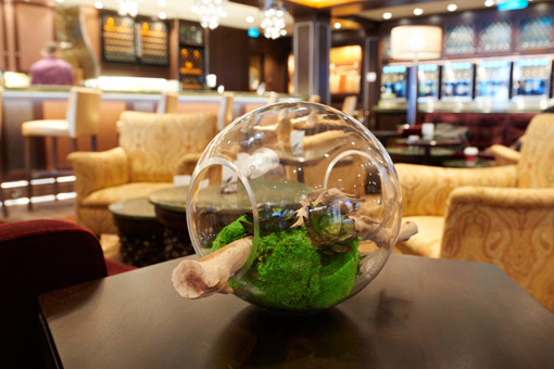 Die Pflanzen und Arrangements auf den Celebrity-Schiffen halten sich zurück. Die Begrünung ist elegant und dezent. Die ausgewählten Pflanzen und Gefäße erzeugen eine einladende Stimmung, ohne dass die Räume überladen wirken. Manchmal ist weniger mehr, das gilt auch für pflanzliche Dekorationen.
